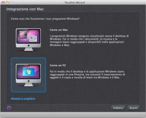 Selezionate l’integrazione di tipo Come un PC, quindi premete il tasto Avanti. Non essendo disponibile una versione per Windows 8 dei Parallels Tools, le integrazioni e le funzioni speciali di Parallels non potranno essere attivate, tanto vale non ottimizzare la virtual machine per usarle.